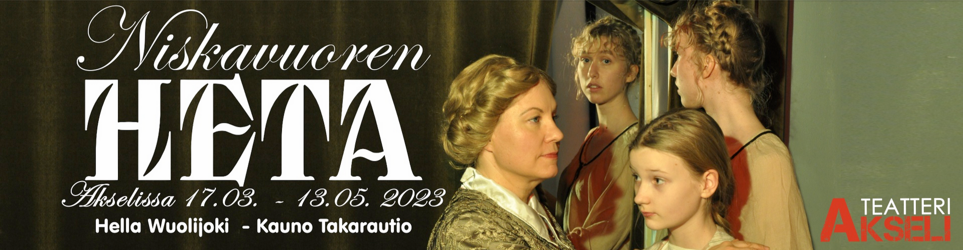 Niskavuoren Hetan tarina nähdään Teatteri Akselin suurella näyttämöllä Kauno Takaraution persoonallisena tulkintana ja ohjauksena. Akselissa Heta nähdään lapsena, nuorena sekä aikuisena naisena kolmen eri näyttelijän voimin! Näytelmä pysyy uskollisena erinomaiselle käsikirjoitukselle ja monille tutuille hahmoille, mutta Akselissa tarina saa raikkaan päivityksen. Niskavuoren näytelmiin kuuluva paatoksellisuus saa seurakseen huumoria ja herkkyyttä.